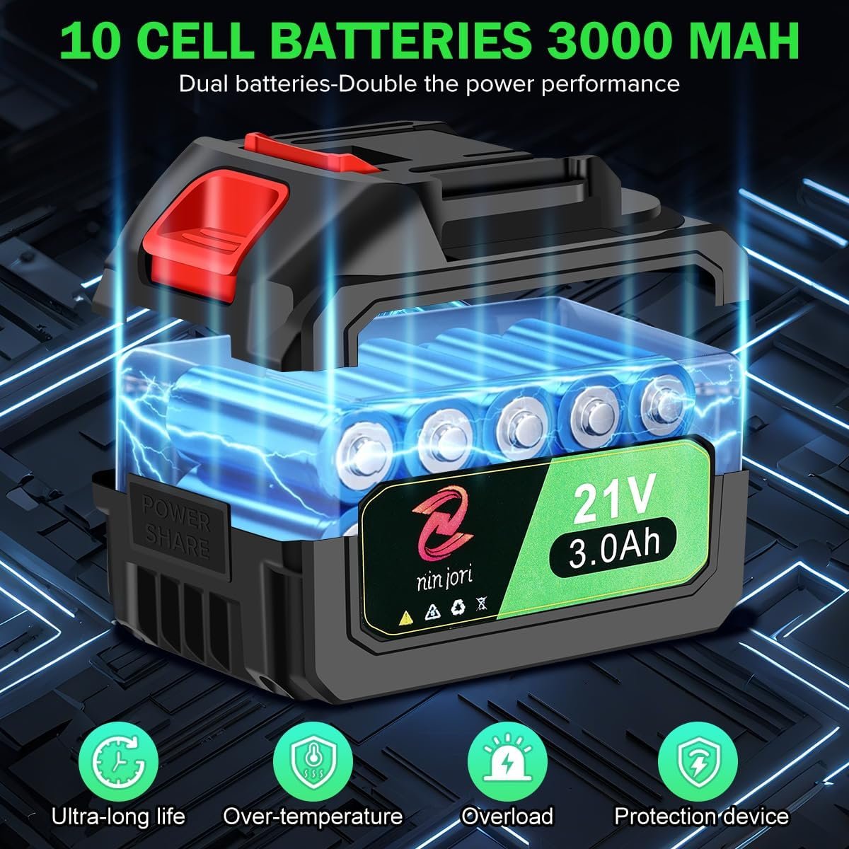 Battery Powered: The cordless leaf blower comes with two 21V-3000mAh lithium batteries and a charger. With these batteries, you don’t need to worry about running out of power when used outdoors. Temperature control protection ensures long-lasting use and avoids overheating during extended work.